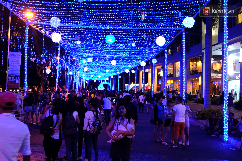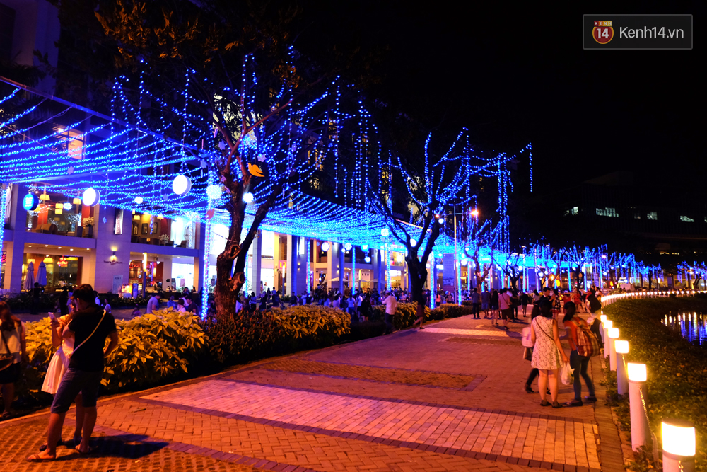 Hàng nghìn người đã đổ về con đường ánh sáng với nhiều màu sắc rực rỡ bên Hồ Bán Nguyệt (quận 7, TP. HCM) để cùng hòa mình vào không khí Giáng sinh đang đến gần.