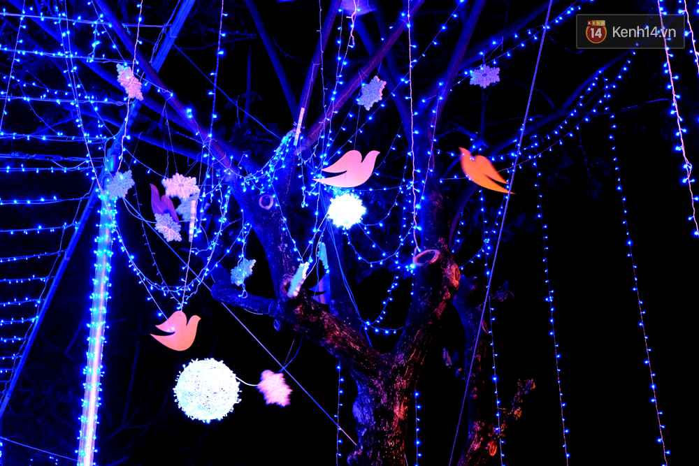 Cây xanh bên đường cũng được trang trí đèn lung linh.