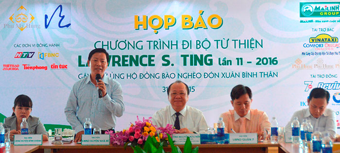 Thông tin trên vừa được đại diện ban tổ chức chia sẻ cùng ViVuMuaSam.Com tại buổi họp báo giới thiệu chương trình Đi bộ từ thiện Lawrence S. Ting vừa được diễn ra vào sáng nay ngày 31/12/2015 tại trụ sở Công ty TNHH Phát triển Phú Mỹ Hưng (801 Đại lộ Nguyễn Văn Linh, Quận 7, TP. HCM).