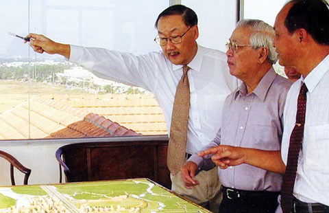 Ông Lawrence S.Ting, Thủ tướng Võ Văn Kiệt và ông Phan Chánh Dưỡng (từ trái qua) trong một lần thị sát tiến độ xây dựng đại lộ Nguyễn Văn Linh và khu đô thị Phú Mỹ Hưng. (Ảnh tư liệu)