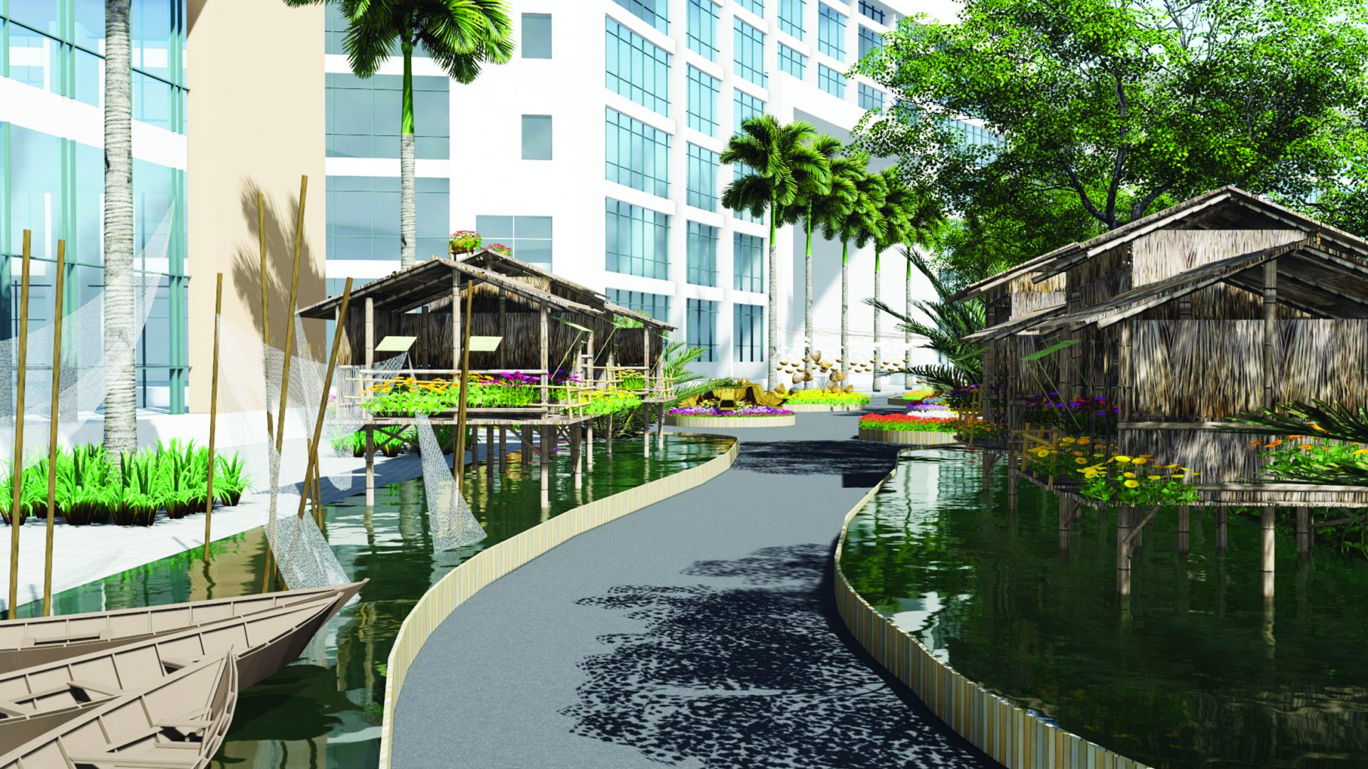 Situated on the waterfront of ancient Nha Be, Phuy Hung is not only surrounded by rivers but Phu My Hung Spring Road is also winding by the beautiful Crescent Lake formed by the Thay Tieu river. With that particular feature, it can be said that Phu My Hung Spring Flowers Festival has the advantage when it comes to restoring the life on the river of “Nha Be of the old days”.