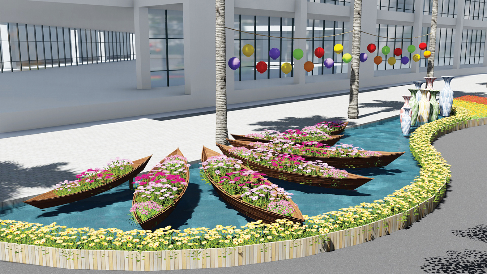 And when Spring comes, in that ecstatic spring spirit there is always the voice of the country calling the traveler, we always recognize that the spirit of the country and that of spring are always close together. Feeling this sense, Phu My Hung Spring Flowers Festival 2018 has the name SPRING LOVE OF THE RIVER, which takes WATER as a highlight for creativity.  We can see that WATER here is THE COUNTRY. WATER is also the basic substance of life, so WATER is the VITALITY which means the SPRING of the universe. WATER is THE ENVIRONMENT, which the whole of humanity is concerned. And finally, RIVER is the nature of the South in general and Nha Be, District 7 in particular.