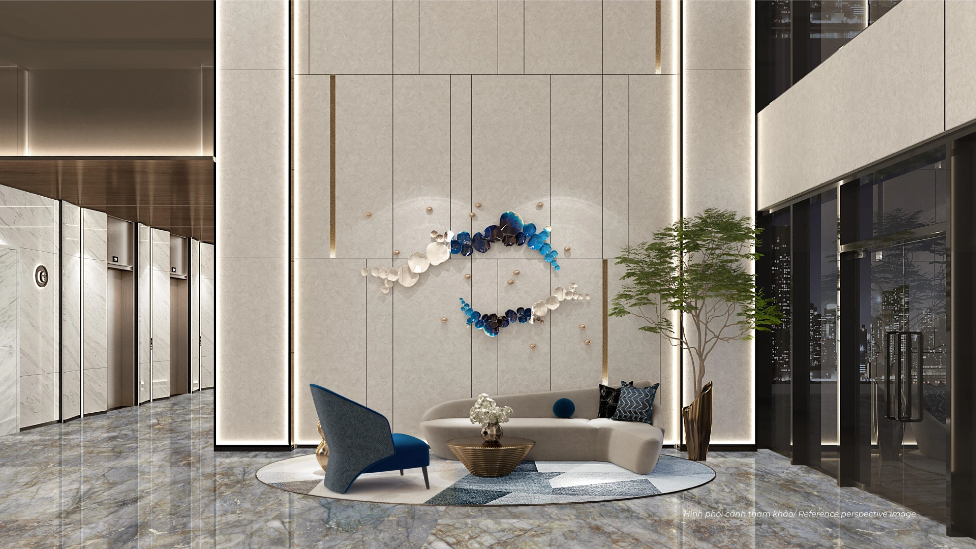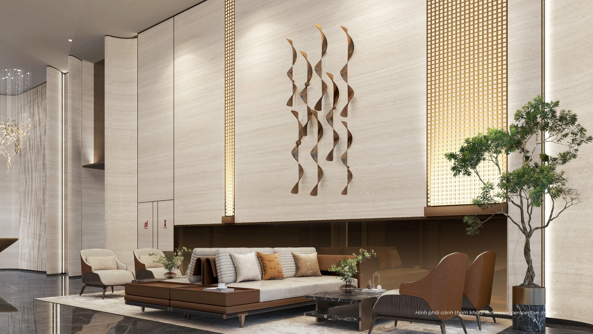 Mỗi tòa tháp sở hữu một sảnh đón riêng, lấy cảm hứng từ triết lý Ngũ Hành: Ivies (Thủy), Camellia (Kim), Lavender (Hỏa), Olive (Mộc), Peony (Thổ). Không gian được tạo tác như những tác phẩm nghệ thuật, mang ý nghĩa thịnh vượng, an lành và hạnh phúc cho cư dân. XEM CHI TIẾT