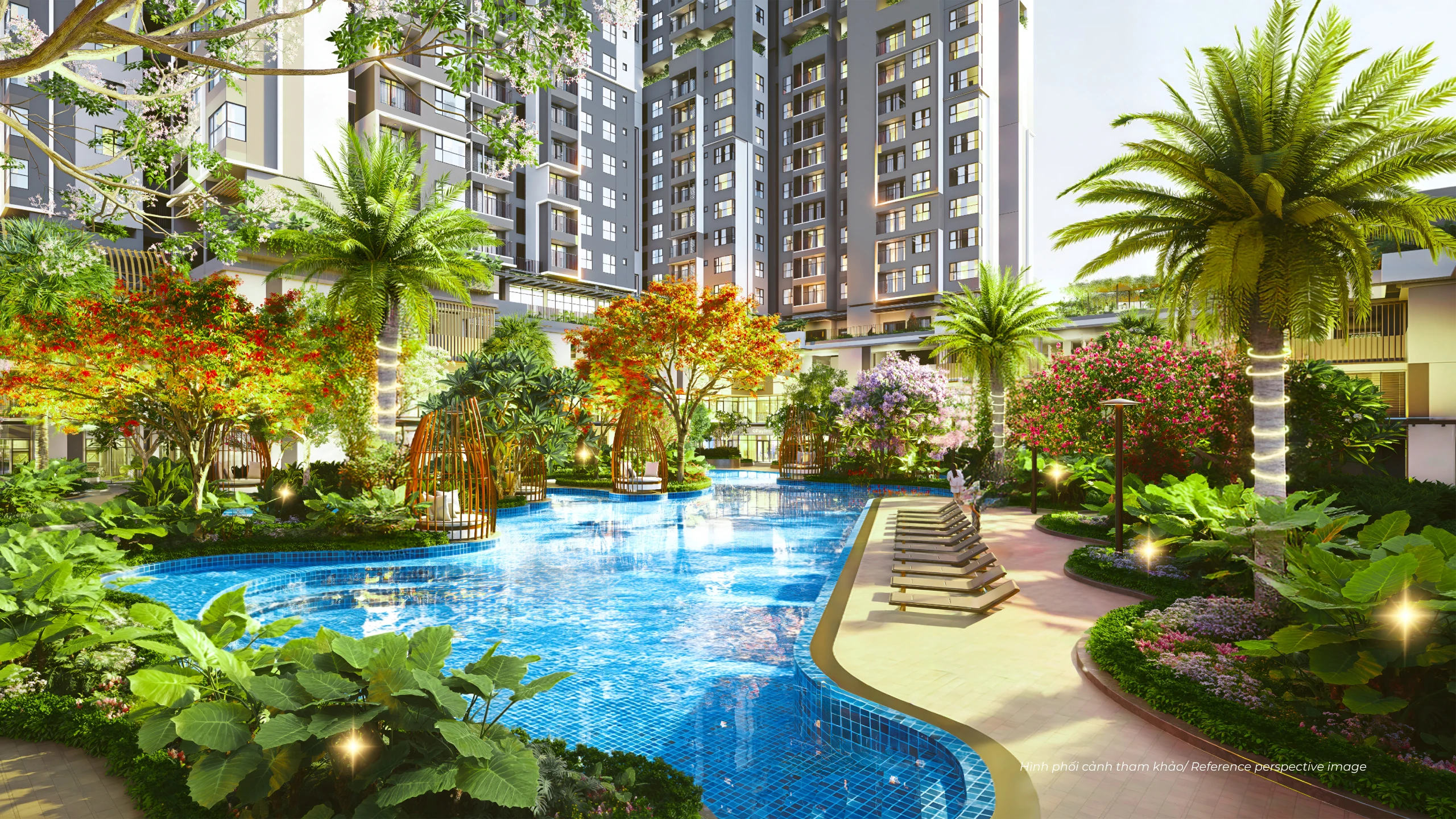 The Five Lakes – Trái tim xanh của dự án: Không gian mặt nước mênh mông kết hợp thảm thực vật đa tầng. Mỗi hồ nước là một “cột mốc” cảm xúc, dẫn dắt cư dân trải nghiệm sự giao thoa hoàn hảo giữa kiến trúc và thiên nhiên nguyên bản.