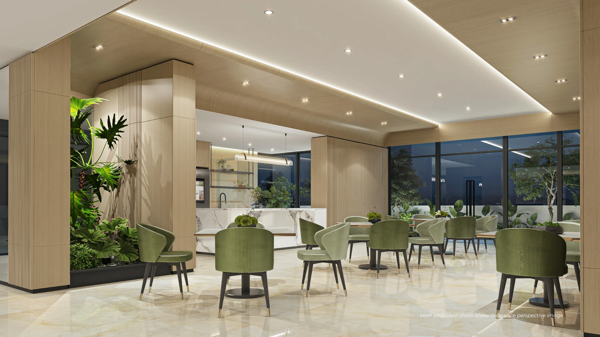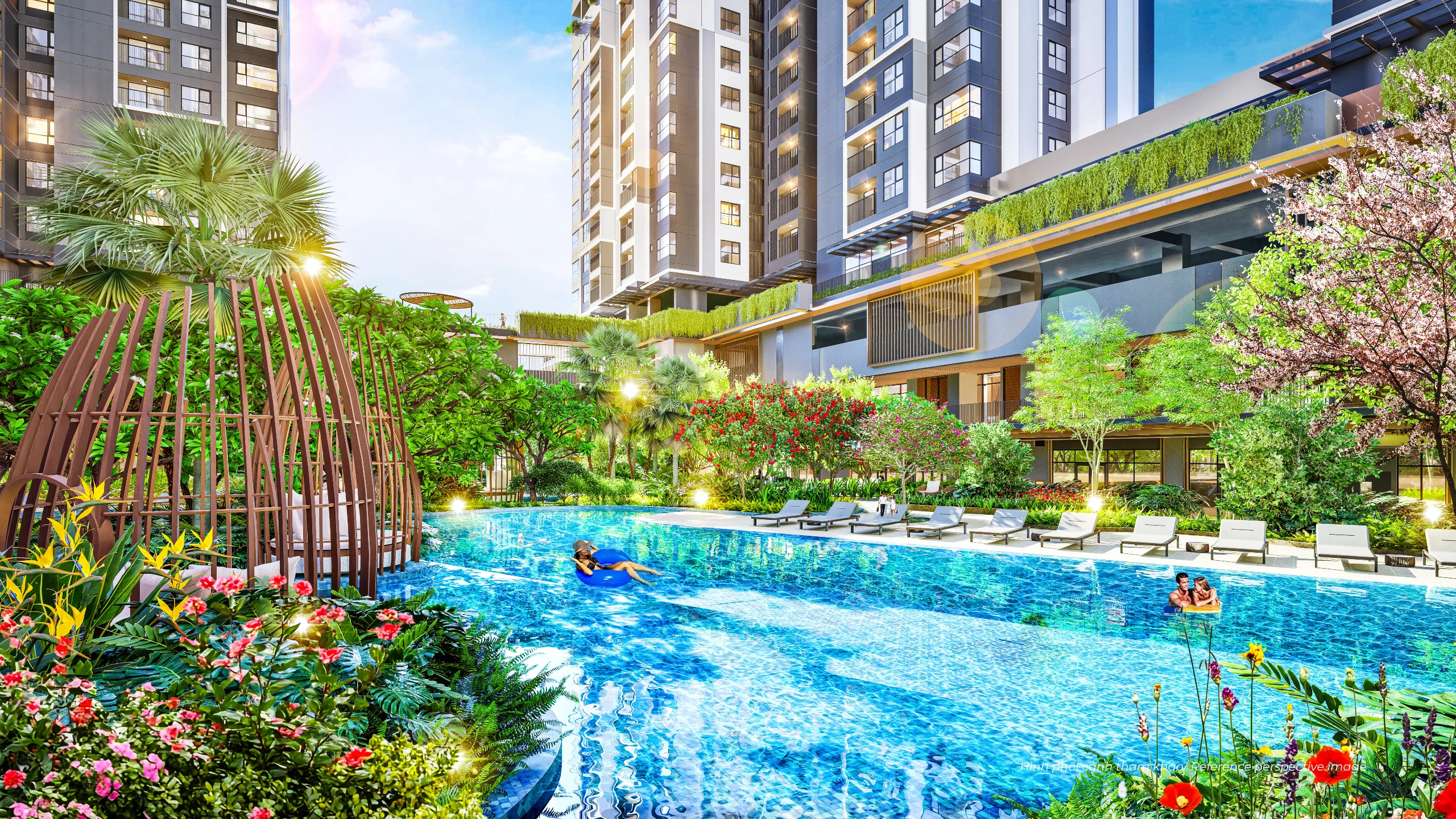 5 tòa tháp được quy hoạch lùi về biên đất, mở ra không gian xanh trung tâm rộng lớn – nơi cây xanh và mặt nước đóng vai trò lá phổi sinh thái, tạo vi khí hậu mát lành, giảm bức xạ nhiệt và mang lại cảm giác an yên cho toàn khu. XEM CHI TIẾT