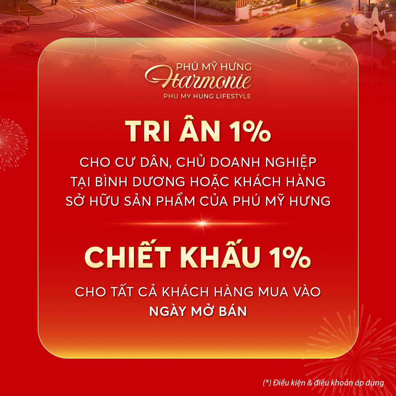 - Chiết khấu 1% giá bán dành cho khách hàng đã sở hữu sản phẩm của các công ty thành viên thuộc Phú Mỹ Hưng Group.