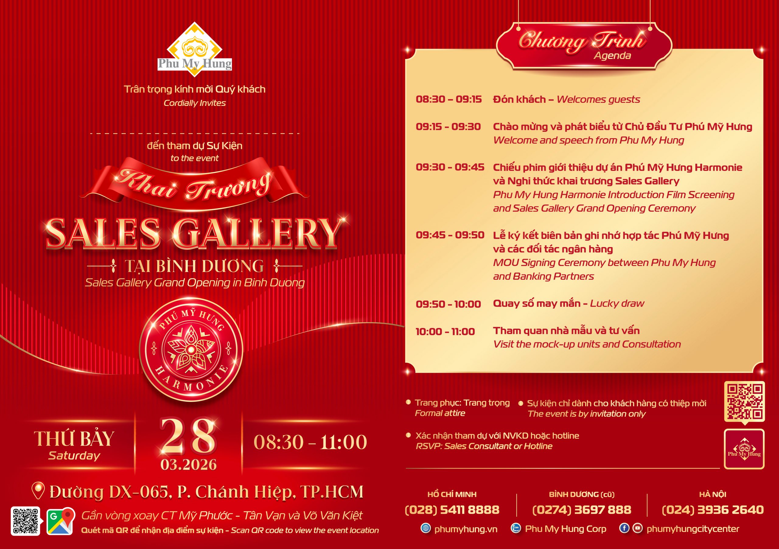 Phú Mỹ Hưng trân trọng kính mời Quý khách đến dự sự kiện khai trương Sales Gallery Phú Mỹ Hưng Harmonie