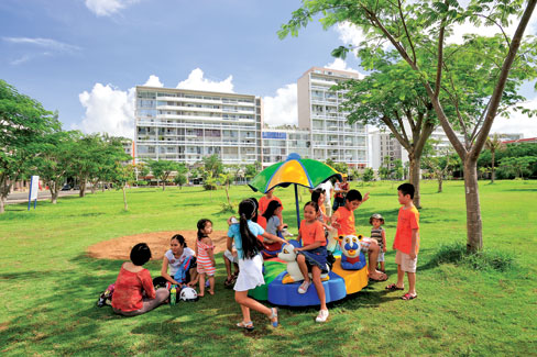 Cư dân đều cho rằng thời gian của họ được sử dụng hiệu quả hơn bởi vài phút đi bộ hoặc chỉ cần nhấn nút thang máy là có thể sử dụng các tiện ích tại chỗ với cửa hàng mua sắm, hồ bơi, phòng tập thể dục, phòng chơi cho trẻ, nơi đậu xe hơi, xe máy riêng biệt… Điện, nước, gas trung tâm, camera quan sát toàn khu, video Intercom liên lạc nội bộ, khu vực thu gom và xử lý rác… được bố trí hợp lý thuận tiện. Những không gian chung đáp ứng nhu cầu giao tiếp không đơn điệu chỉ là hoa viên tầng trệt mà còn có những vườn dạo theo kiểu vườn thượng uyển ở các tầng lộ thiên. Ngoài ra, một số khu còn có phòng sinh hoạt tập thể dành cho cư dân họp mặt hoặc gia đình tổ chức tiệc tùng. Ở đây, thiết kế được chú trọng chỗ đậu xe máy và xe hơi, tuy nhiên, số lượng ô đậu xe hơi chưa đủ đạt tỷ lệ 1:1
