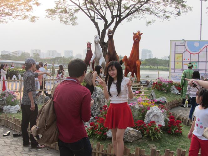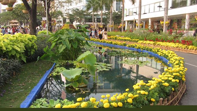 Hội Hoa xuân với chủ đề “Hương sắc miền sông nước” được tổ chức tại khu Hồ Bán Nguyệt, khu đô thị Phú Mỹ Hưng, Quận 7, TP.HCM. Hội hoa xuân với những nét đặc sắc của miền sông nước, mang đến cho du khách một không gian Tết đậm nét dân dã.